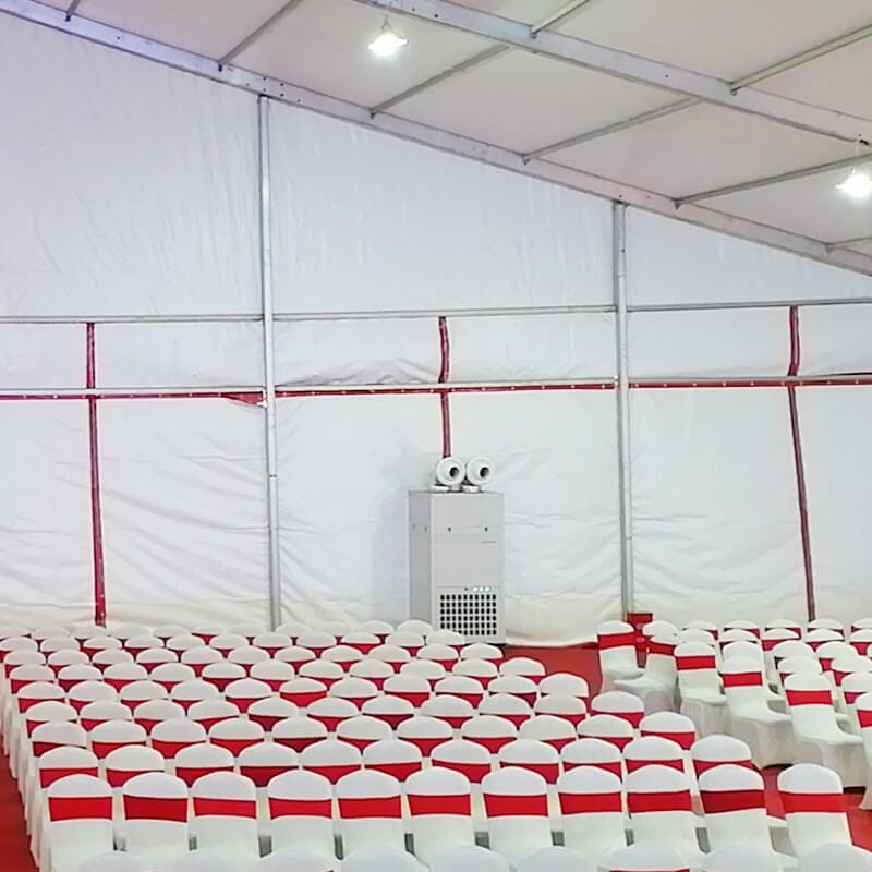 储物篷采用ABS五金墙体。 这种工业仓储篷具有很强的耐候性。 即使在炎热的夏天和寒冷的冬天,它们也可以安全。 ABS五金墙体的适用温度为60℃至-10℃。如果您需要防火夹芯板墙体、卷闸门、岩棉板墙体、篷房专用空调降温,我们可以根据您的需求提供不同的集成方案,用于帐篷的不同存储用途。