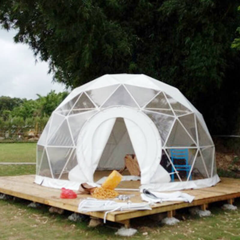 球形帐篷所需材料全部由工厂定制,可现场快速架设,支持反复安装、拆卸、迁移。 而且由于结构简单,材质轻,安装安装非常快捷方便。