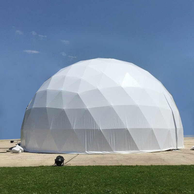 规格和外观的各种变化可以给半球型帐篷带来广泛的适用性,如展览、促销、会议等各种商业活动,以及非常受欢迎的帐篷酒店都适用。 并且因为球面的特性,带来了光投影、球顶投影等新的创意方式,可以打造出当下非常火爆的球幕影院,为活动带来更多的创意方式!